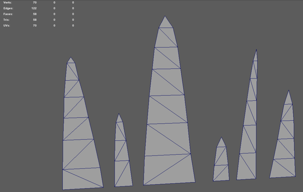 Lastly, let’s take a look at the model. It’s only 58 tris, but each patch of grass uses two of them, so each patch of grass uses 116 tris. With how many patches you need for the grass to look good this would quickly add up to 1000s of polygons in game, but since this project was done using Unity’s High Definition Render Pipeline the performance hit was negligible.